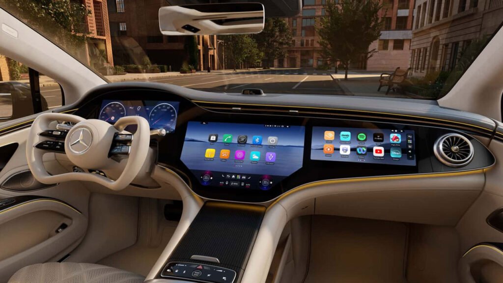 A principal evolução está na adoção da arquitetura elétrica de 800 volts, que permite carregamentos mais rápidos e maior eficiência no uso da energia. O modelo passou a oferecer recarga em corrente contínua de até 350 kW nas versões mais avançadas, enquanto a configuração de entrada atinge até 330 kW. Com isso, o EQS reduz o tempo necessário para recuperar autonomia, um dos pontos mais sensíveis para consumidores de veículos elétricos.