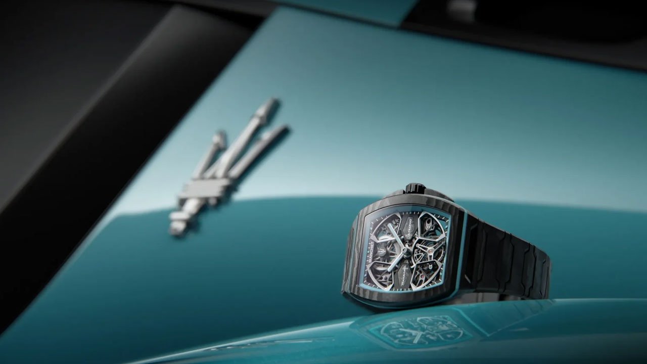 O modelo foi concebido para traduzir a identidade da montadora italiana em um produto de alta relojoaria. O mostrador esqueletizado faz referência ao desenho das rodas do Maserati MC20, enquanto o uso de materiais como carbono de alta densidade remete ao chassi monocoque do veículo. A proposta, segundo a empresa, é reforçar a conexão entre design, engenharia e posicionamento de marca.